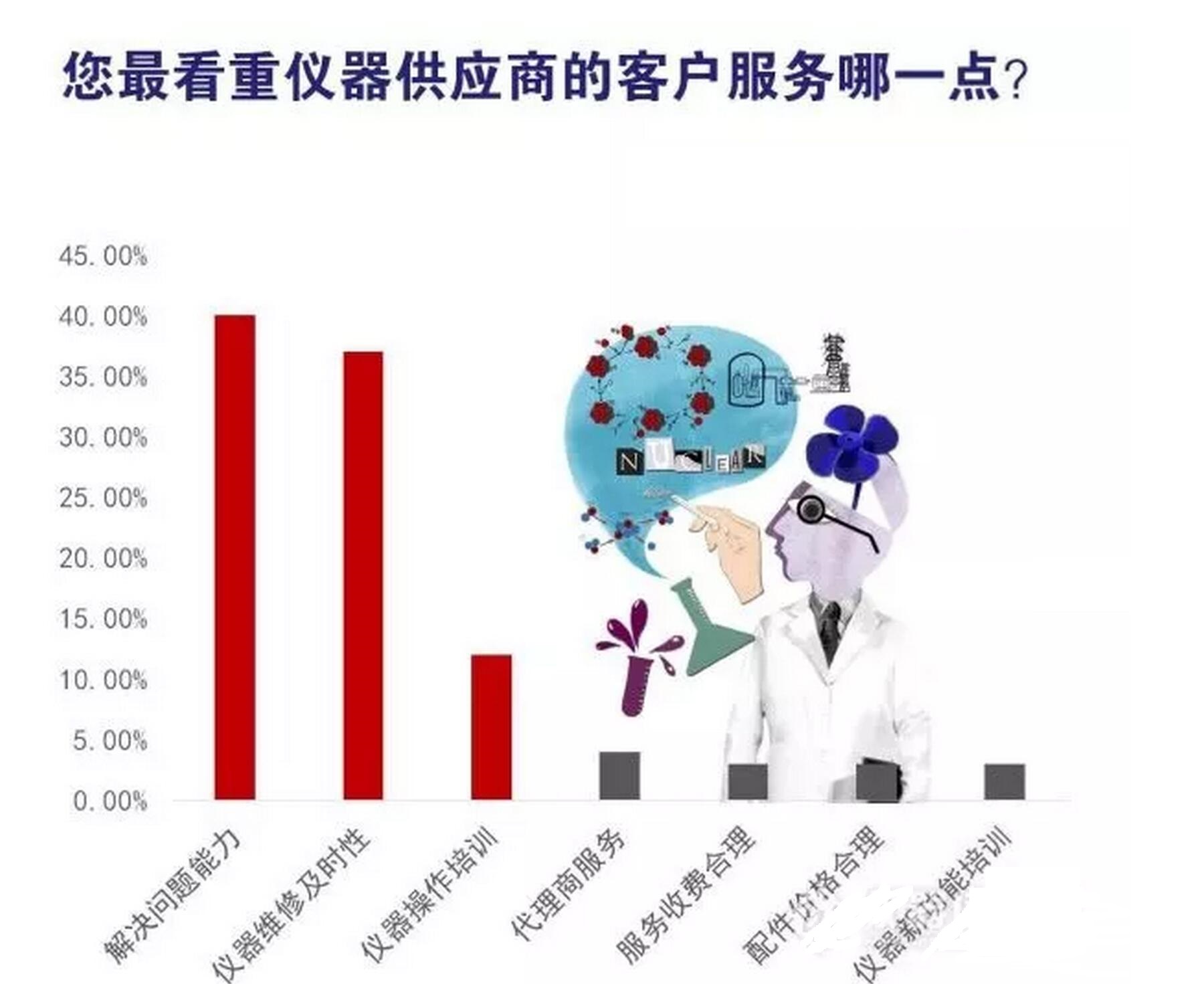 小編在前期調(diào)查中發(fā)現(xiàn),儀器用戶對于儀器供應(yīng)商售后的各項服務(wù)中,最看中的分別是解決問題的能力、儀器維修及時性及儀器操作培訓(xùn)三點。