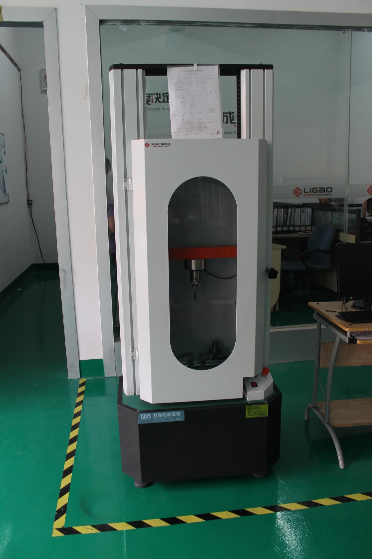 1、拉力試驗(yàn)機(jī)的力量值校正:進(jìn)入計(jì)算機(jī)程序后于打開(kāi)校正界面,按測(cè)試開(kāi)始,取一標(biāo)準(zhǔn)重量砝碼輕掛于上夾具連接座,記錄計(jì)算機(jī)顯示力量值,并計(jì)算與標(biāo)準(zhǔn)重量砝碼之差,誤差應(yīng)不超出±1%。