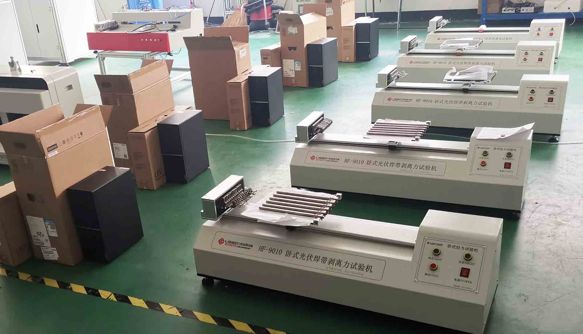 江蘇力高檢測(cè)設(shè)備有限公司生產(chǎn)的光伏焊帶拉力試驗(yàn)機(jī)在光伏行業(yè)占首要地方,與通威,隆基樂葉,中來等企業(yè)期合作,產(chǎn)品得到客戶的高度認(rèn)可,下圖為江蘇某光伏廠家一次性訂購(gòu)五臺(tái)十二工位光伏焊帶拉力試驗(yàn)機(jī)。